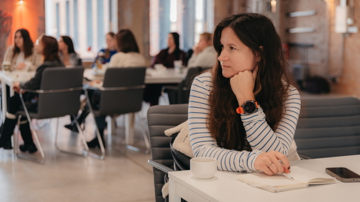 «Після закінчення навчальної програми учасниці можуть долучитися до програми менторської підтримки й онлайн отримати допомогу від експертів з певної теми, яка їх цікавить. Наприклад, у когось є питання делегування. І ми знаходимо конкретно під цей запит експерта, який їм допомагає впродовж трьох місяців працювати з питанням делегування», — пояснює менеджерка.