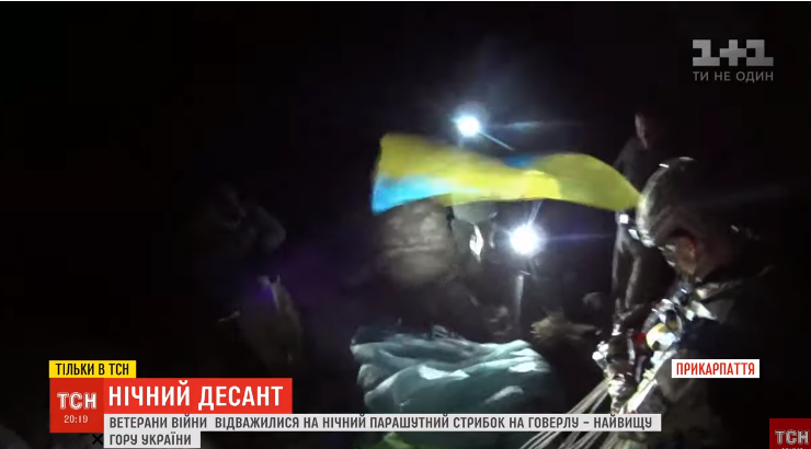 Через чотири години, завантажені парашутами та спецобладнанням, ці троє спустяться з Говерли, поставлять намет і зможуть відпочити. Від ночі, коли все вдалося, залишаються фото – вони вночі розгортають прапори на Говерлі та сміються, дуже задоволені собою.