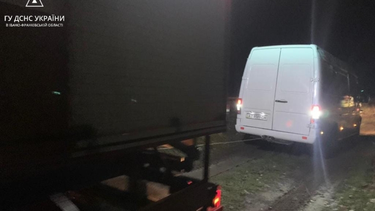 26 листопада о 23:20 до Служби порятунку надійшло повідомлення про те, що в селі Дем’янів Бурштинської ТГ мікроавтобус з’їхав з проїжджої частини дороги та не може самостійно продовжити рух. В салоні мікроавтобуса перебуває сім’я, а саме вагітна жінка, дворічна дитина та чоловік.