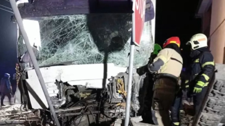 За попередньою інформацією, водій вантажного автомобіля в’їхав у бетонну огорожу, внаслідок чого двох людей затиснуло металевими конструкціями у вантажівці.